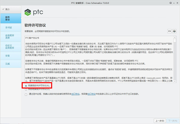 2、进入软件安装向导页,勾选“我接受...”在点击下一步;