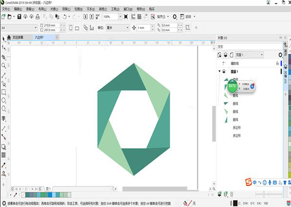 1、它虽然是一个专业的矢量绘图软件,但是对小白特别友好,软件的功能特别强大,复杂的操作能用简单的工具完成。非常适合我们这种小白下手,入门也快,很好满足了我速食主义的需求。我使用CDR矢量绘图软件做一个六边形环来作参赛的作品,包含的知识点不多:画六边形、造形调整、填充。