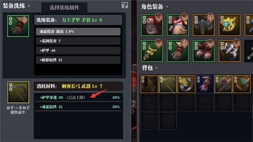 有关原料的选择,洗炼属性不要求必需是类似装备,因此但凡是蓝装抑或是金装,都能作为洗炼原料,原料的属性越低越高,标值越高越厉害,每件装备全都有属性限制,比方说上边这一个手套,物理穿透这一个属性的限制是30,假如你选用的原料物理穿透是45的,即使洗炼顺利,最大也总是是30,不会超出这一个标值,不了解的能够参照图为: