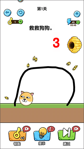 我的狗狗游戏没有时间限制,想试多少次都行,但画线稳不稳很重要,要是线没画牢,蜜蜂就会钻空子蜇狗,里面关卡超多,每关都有好几种解法,等你慢慢发现,这种一关多解的设计,既练你的空间想象能力,又得动脑子想策略,每次救狗都像一场智慧和创意的冒险,玩起来特别有代入感,就像自己真的在救狗狗一样。