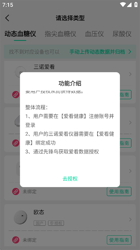 先锋鸟控血糖app是一款健康助手软件。从记录血糖、血压到心率这些关键数据,全都能搞定,不用再拿纸笔手动记,只要通过蓝牙连上三诺、雅斯等血糖仪,数据就能自动上传到app里,它还会把这些数字变成清晰的趋势图,比如血糖是早上高还是晚上低,一眼就能看明白,帮你更好掌握身体状况。