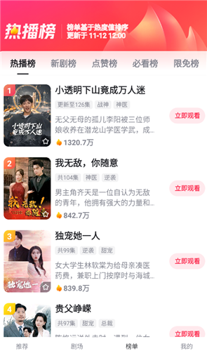 好看短剧app是当下超火的短剧视频播放平台,里面的短剧题材特别丰富,如喜剧、爱情剧、悬疑剧、科幻剧等都能在这里找到。最让人满意的是,平台里所有短剧都能免费看全集,不用充值一分钱就能完整看完每一部剧,不用为了看后续内容额外花钱。而且更新速度特别快,每天都有新的短剧资源上线,就算天天看也不会觉得腻,完全能满足你追短剧的需求。同时好看短剧app还凭着多样的题材、丰富的内容和清晰的画质,受到了很多短剧用户的喜欢,看剧的时候就像身临其境一样,能带来特别棒的沉浸式观影体验。更有着多元化的短剧排行榜单,很多热门的题材都可以任意选择观看,如果喜欢看短剧的话,赶紧来试试这款软件吧。