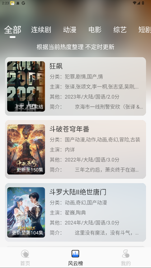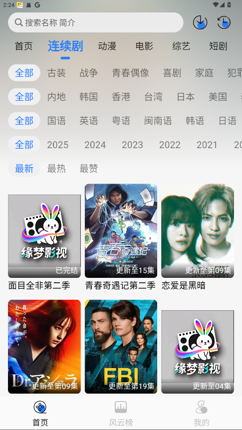 缘梦影视的界面设计简单清爽,顶部有电影、连续剧、动漫等五大类标签,点一下就能快速切换,底部风云榜实时更新热门剧集,追最新热点超方便。想存着慢慢看?离线缓存功能支持批量下载多集,出门在外也能看,手机还能直接投屏到电视,大屏观影更过瘾。