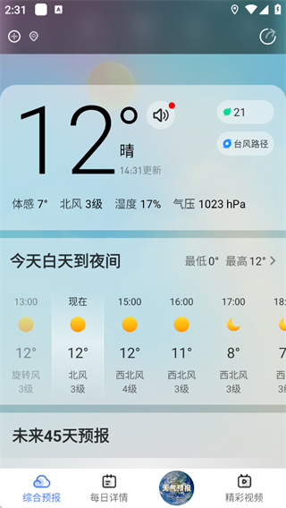 遇到暴雨、台风、暴雪这些极端天气时,及时天气会像天气哨兵一样及时推送预警信息,提前提醒你带伞、穿厚衣服或者调整出行计划,不管你是上班、上学还是出门旅行,打开app就能快速掌握最新的天气动态,再也不用担心被突然的天气变化偷袭,这种实时又贴心的服务,让天气预报真正成为你生活中的好帮手,再也不用靠看天吃饭。