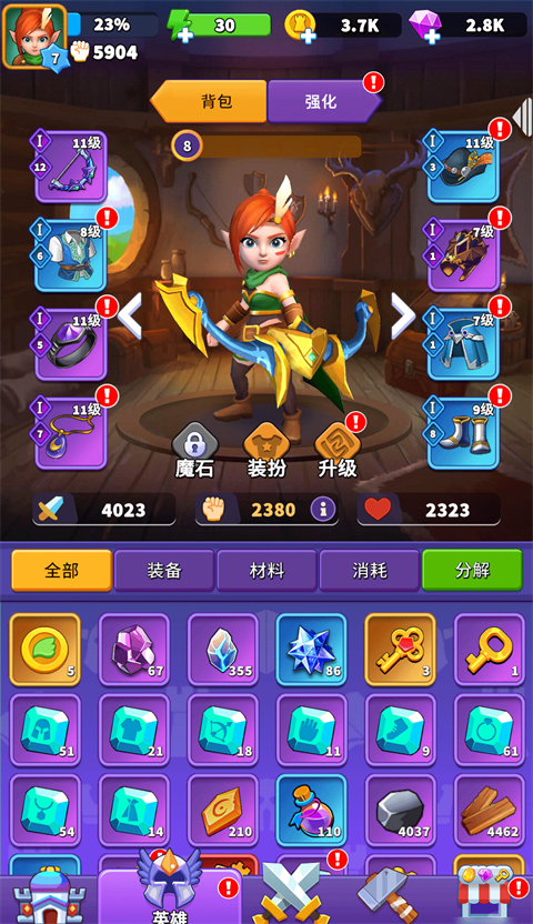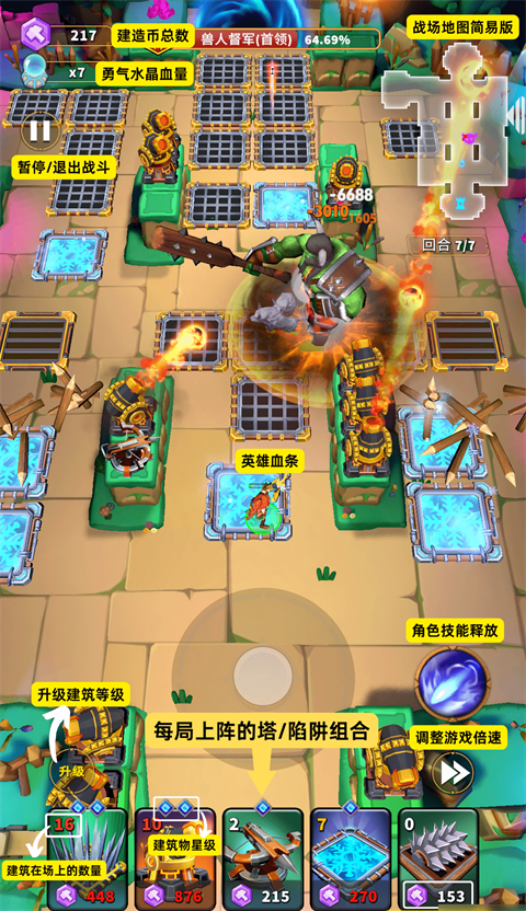 人征塔战官方版是一款以猫咪大陆为背景的策略手游。游戏中升级装备得攒材料,比如三星的重炮手弓升四星,得用两个同款的三星弓当升级券,越高级的装备越需要稀有材料,得慢慢攒,技能树也分得清楚,喜欢攻速快的选攻速流,想暴击猛的选暴击流,爱控场的选控制流,根据关卡需要换着用,灵活得很。