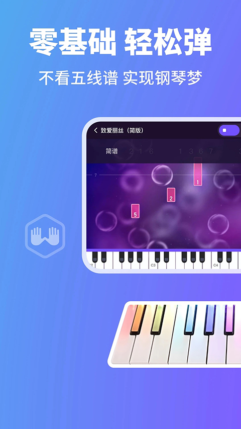 泡泡钢琴app是一款钢琴学习软件。它用动态瀑布流一样的提示,把音符变成跟着走的小箭头,手指按手机屏幕或者连接的电钢琴、手卷琴就能弹,蓝牙一连,市面上九成智能琴都能用,相当于给设备装了个翻译器,几分钟就能学会弹小星星这类入门曲,曲库里有从卡农到周杰伦热门歌的数千多首,从小孩到老人都能找到想弹的曲子。