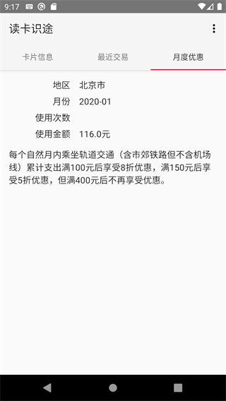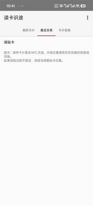 读卡识途app最贴心的是能自动识别卡片类型,余额有变化会实时更新,还能设置低余额提醒,再也不怕坐车时卡里没钱,不管是公交卡、地铁卡,还是其他交通联合卡,基本都能支持,平时通勤、跨城出行都能用,系统会自动适配不同城市的卡片规则,不需要自己手动调整。