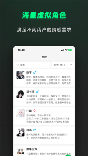 灵动次元app是一款AI虚拟互动的社交聊天软件,以拟真对话和情感陪伴为核心,不管是想找倾诉对象、体验虚拟恋爱,还是喜欢二次元互动,都能满足需求,其中的资源超丰富,拥有多种不同人设的虚拟角色,涵盖傲娇学姐、温柔学长、元气少女等多种类型,每个角色都有独立背景故事和专属音色。更支持自定义捏崽,可自由设定角色的年龄、外貌、性格甚至背景故事,打造专属AI伙伴。同时灵动次元app互动模式多样,有长旁白沉浸剧情模式、拉近距离的亲密模式,还能开启AI群聊,把喜欢的角色拉到一起互动对戏乐趣十足。另外支持文字聊天和语音通话,隐私保护到位,对话仅本地或加密云端存储,无社交压力和道德负担,是款超治愈的AI社交神器。