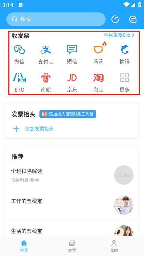 票税宝app是一款超贴心的手机发票软件。它能自动从微信、支付宝、电商平台、邮箱这些地方抓来电子发票,不用你手动一张张保存,收到发票后,它还会像个小侦探一样自动检查真假,帮你避开假发票和重复报销的坑,所有发票都按类型比如餐饮、交通、购物分得明明白白,按时间排得整整齐齐,找发票时就像翻手机相册一样轻松。