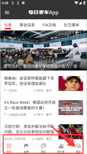 每日赛车是一款口袋赛事库软件。每天打开都能刷到最新鲜的赛事动态,比如车手排名突然变动、赛道突发事故、车队策略调整等,想看比赛直播?点赛事直播栏就能多视角切换,从车手视角到赛道全景全都有,想研究数据?数据统计模块里连轮胎磨损程度、进站用时都标得清清楚楚,车手历史成绩、车队策略分析也能一键查看,追赛事就像带着小助手一样方便。