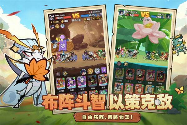 伴你同行手游是一款三国放置卡牌游戏。游戏中玩家能跟着蠕虫将军的独特视角重新认识三国历史,还能招募上百个武将,每个武将都有自己的技能树,不同角色搭配还能触发羁绊效果,比如关羽和张飞一起上阵时,就能用桃园结义技能让全队暴击率飙升,打起架来更带劲。