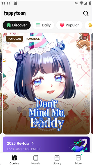 Tappytoon官方版是一款漫画阅读软件。它特别受年轻女生喜欢,里面不仅有漫画,还有小说可以看,内容类型超丰富,浪漫、搞笑、动作、科幻、恐怖啥都有,尤其是浪漫故事最火,平台支持英语、法语、德语三种语言,画和文字都是高清的,看起来特别清楚,而且更新超及时,不会让你等很久。