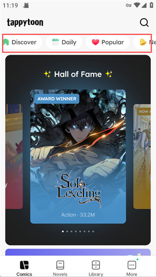 Tappytoon提供免费试读,你可以先试看几章再决定要不要花钱,买硬币或者选套餐就能解锁更多内容,找作品也方便,用关键词搜或者按分类筛选都行。它最大的特点是实时更新的独家资源,题材选择多,解锁方式灵活,还能和其他读者分享阅读心得,边看边聊天,超有参与感。