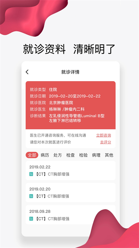 北大肿瘤医院app最新版本是一款赋能医疗软件。它用云病历把分散的看病信息整合成电子档案,就像把散乱的病历卡片整理成一本清晰的电子手册,还加了加密技术保护隐私,就像给病历上了把安全锁,登录时用多种认证方式,比如密码加指纹识别,双重保障更安心,就像给家门加了两道锁,防止别人乱闯。