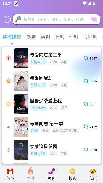 泰剧tvapp是一款轻松追剧软件。从经典老片到刚出的热播剧,啥类型的都有,爱情、悬疑、历史、喜剧,随便挑,不管你是喜欢甜到齁的恋爱剧,还是烧脑的推理剧,都能在这儿找到心头好。而且它和泰国好多电视台都有合作,热门新剧一上线就能看,不用眼巴巴等好久,追更特别痛快。