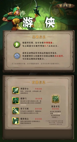 游侠是比较核心的输出类角色。进入游戏,完成新手引导,即可招募她。拿到游侠后,除了提高她的攻击力,最优先要做地就是解锁她的第五技能【数箭齐发】。该技能解锁前和解锁后的游侠,使用体验可是非常不一样哟。
