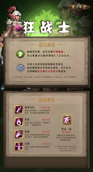 但要注意,虽然她普攻伤害高,但不建议在前期重点培养。因为前期很难有途径和大量的资源来提升这三个属性,而没有这三个属性的加持,狂战士就是个喜欢送死的“脆皮战士”!