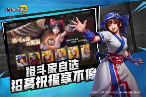 全明星觉醒手游官方版是由SNK正版授权,倾力打造的年度策略卡牌手游巨制。在这里草薙京、八神庵、不知火舞等拳皇系列经典格斗家,与侍魂、合金弹头等SNK的众多传奇角色首度实现跨时空集结。游戏采用高品质3D建模与影视级动画演出,完美复刻每位角色的标志性招式与爆气必杀,唤醒你最深处的街机情怀与热血记忆。独创觉醒共鸣系统,让你不仅能收集培养心仪的角色,更能通过深度策略搭配,激发角色间的羁绊连携,释放超越极限的终极合体奥义,体验一拳破屏的畅爽打击感。与此同时全明星觉醒手游福利也非常丰厚,每日登录即可领取海量道具,更有招募商城可参与,收集众多能力各有的角色,打造独一无二的阵容闯关。