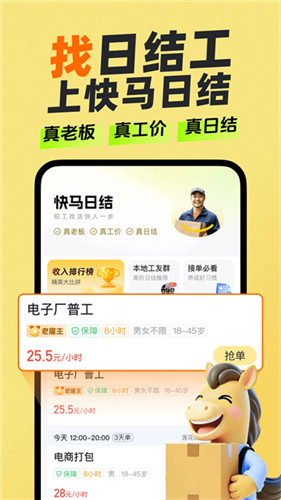 快马日结app官方版是一款日结零工招聘软件,核心定位是破解企业招工荒与工人求职难的双向困境,依托智能匹配技术连接全国用工企业与蓝领求职者,打造高效、靠谱、灵活的零工对接平台。平台日均提供伤亡真实岗位,服务超千万工友,覆盖物流、仓库、制造工厂等多类用工场景,涵盖打包、分拣、普工、装卸等多种工种,实现同城招工找活十分钟极速响应。软件对企业与求职者均实行严格实名认证,杜绝虚假岗位与违规信息保障双方权益。针对求职者,快马日结app支持LBS定位推荐附近岗位、工资当日结算,搭配智能推荐算法,精准推送适配岗位,操作简洁便捷无需复杂注册,打开即可浏览报名,成为蓝领群体灵活就业、快速增收的实用工具。