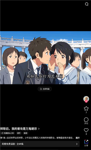 火龙漫剧手机版是一款漫剧播放平台,凭借独特定位与贴心设计在漫剧赛道脱颖而出,彻底打破漫剧与动漫动画的认知边界。软件采用竖屏信息流设计,贴合当下短视频用户使用习惯,单集时长只有几分钟无需长时间投入即可享受完整剧情。平台主打免费爽看模式,无多余广告干扰,同时提供多画质调节、倍速播放、离线缓存等实用功能,适配不同网络环境。更支持收藏追更、剧情评论、同好互动等功能,搭建专属漫剧社区,用户可分享观剧感受、交流剧情伏笔。与此同时火龙漫剧app界面简洁易操作,功能分区清晰新手也能快速上手,全方位兼顾便捷性与体验感,打造专属漫剧追更新体验,有兴趣的用户现在即可前往本站安装,了解更多高人气漫剧。