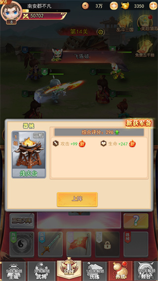 王者勋章官方版里的阵容可以随便换,不用怕之前培养的资源浪费,比如前期用五虎上将纯蜀国阵容快速推图升级,后期打跨服国战时,再换成神魔混搭的阵容更厉害。还有鼓台系统,敲敲鼓就能拿到萌将卡,给武将加属性,高级鼓台还能解锁特殊技能,让武将、装备、萌将一起成长,玩法更有层次感。