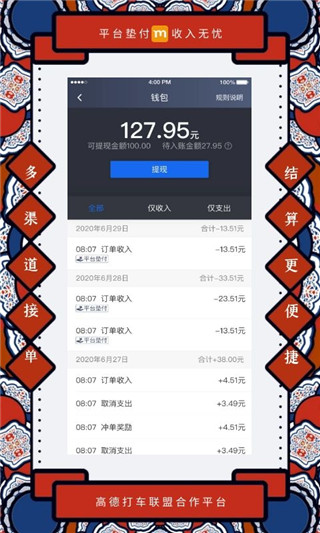 添猫司机安卓版是一款网约车司机接单软件。司机注册后,通过实时地图就能看到附近的订单,系统会自动推荐距离近、路线顺的单子,帮你减少空车跑的时间,接单后,内置导航会规划最优路线,避开堵车路段,还能根据实时路况调整路线,让你更快到达目的地,乘客下车后,车费会自动结算,你可以随时查看收入明细,提现操作也很简单,动动手指就能到账。